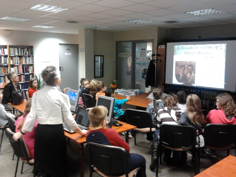 Wycieczkę urozmaiciła prezentacja multimedialna o historii książki która wywołała lawinę pytań ze strony dzieci. Wycieczka ta miała charakter edukacyjny w połączeniu ze słodkim poczęstunkiem.