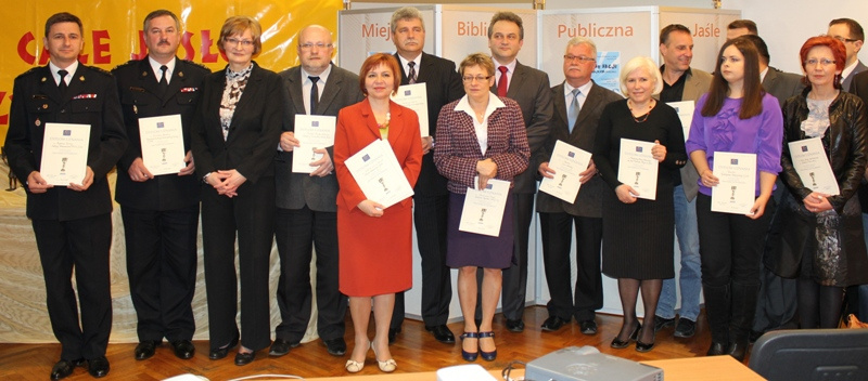 Akcja „Całe Jasło czyta dzieciom” ma od lat swoich licznych sprzymierzeńców, zatem najważniejszym punktem spotkania było podziękowanie wszystkim wspierającym Bibliotekę w propagowaniu idei głośnego czytania. Dyrektor MBP w Jaśle wręczyła dyplomy za aktywny udział oraz życzliwość i wsparcie przedstawicielom władz samorządowych i instytucji, sponsorom, przedstawicielom mediów, nauczycielom szkół i przedszkoli, bibliotekarzom oraz osobom zaangażowanym w akcję „Całe Jasło czyta dzieciom”. Uczestnicy finału podkreślali w rozmowach ogromną rolę wspólnych, szeroko pojętych działań na rzecz upowszechniania nawyków czytania przez dzieci i dzieciom, które mają niezwykle istotny wpływ na ich rozwój psychiczny, emocjonalny i moralny, oraz – co szczególnie ważne i optymistyczne, deklarowali chęć i gotowość dalszego udziału w prowadzonej przez Bibliotekę akcji „Całe Jasło czyta dzieciom”. Została również zaprezentowana wystawa fotografii z akcji, oraz wystawa książek polecanych przez Fundację „ABCXXI Cała Polska czyta dzieciom”. Goście Biblioteki wzięli także udział w ankiecie „Najważniejsza książka mojego dzieciństwa to...”. Jej wynik pokazał, że najważniejsza książka sprzymierzeńców głośnego czytania w MBP w Jaśle to „ Dzieci z Bullerbyn” A. Lindgren, a tuż za nią „Ania z Zielonego Wzgórza” L.M. Montgomery i Baśnie H.Ch. Andersena. Z pewnością nadarzą się okazje do głośnego czytania fragmentów ulubionych książek w trakcie akcji „Całe Jasło czyta dzieciom”, która nieprzerwanie trwa w Bibliotece.