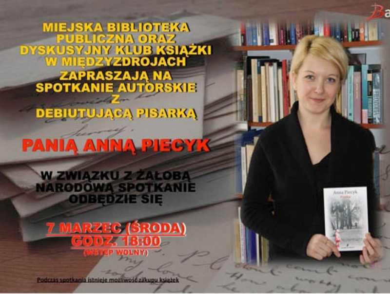 W Miejskiej Bibliotece Publicznej w Międzyzdrojach im. Jana Kochanowskiego w dniu 7 marca 2012 roku odbył się niecodzienny wieczór autorski. Z czytelnikami spotkała się Anna Piecyk, debiutująca pisarka, od sześciu lat mieszkanka Międzyzdrojów. Spotkanie to miało podwójnie odświętny charakter, gdyż Pani Ania jest bibliotekarką w tamtejszej Bibliotece, członkinią założonego w ubiegłym roku Koła Stowarzyszenia Bibliotekarzy Polskich.