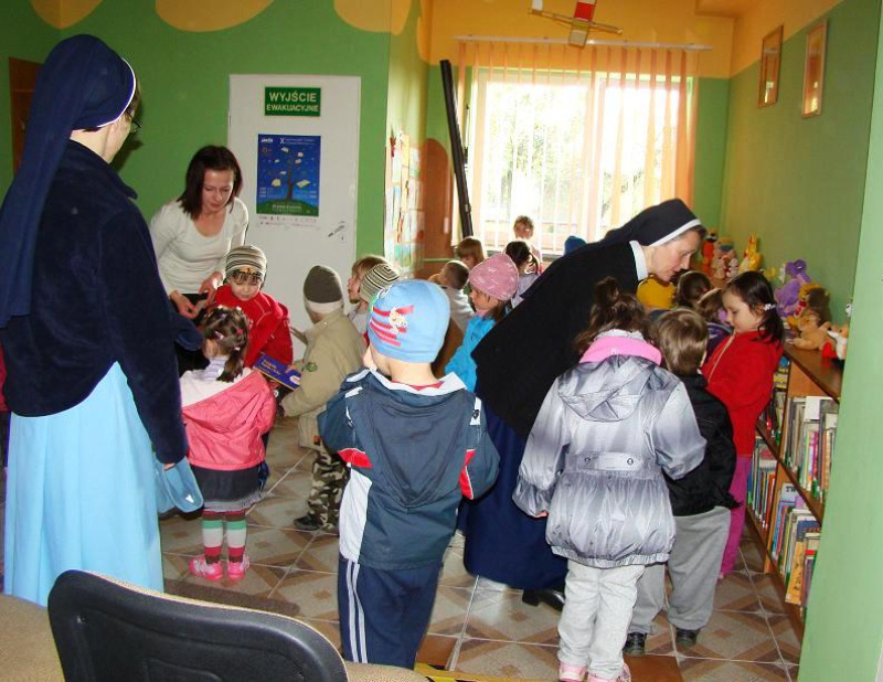 W radosnych nastrojach dzieci wraz z opiekującymi się nimi Siostrami opuściły bibliotekę, a niezapomniane przeżycia z pewnością na długo pozostaną w ich pamięci, zwłaszcza, że dla wielu trzylatków była to pierwsza wizyta w bibliotece.