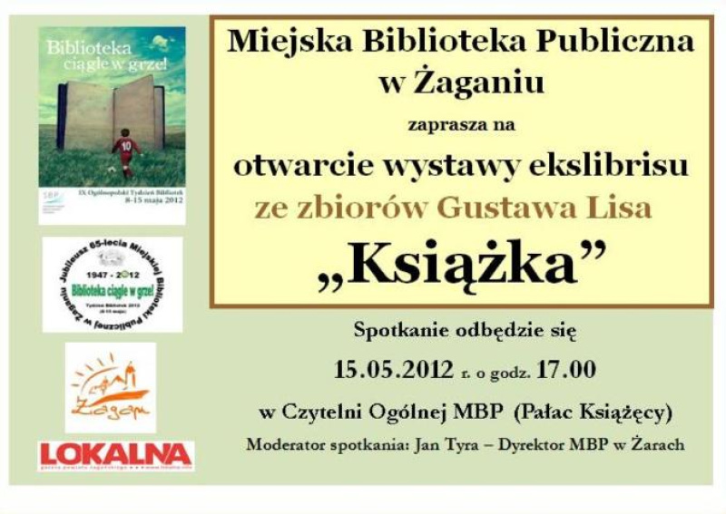 - Otwarta Biblioteka – dla każdego mieszkańca Żagania, udostępnienie wszystkich działów biblioteki (8 – 15 maja 2012 r. w godzinach pracy oddziałów).
