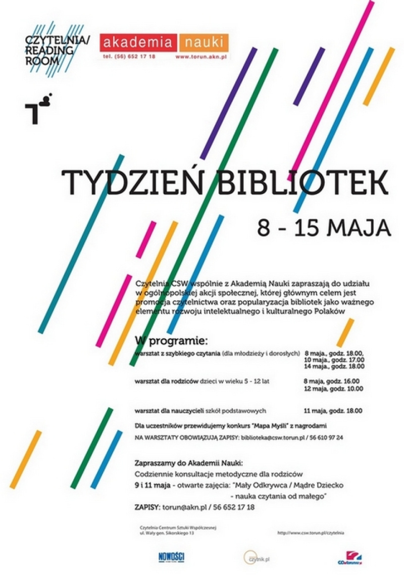Czytelnia CSW wspólnie z Akademią Nauki zapraszają do udziału w ogólnopolskiej akcji społecznej, której głównym celem jest promocja czytelnictwa oraz popularyzacja bibliotek jako ważnego elementu rozwoju intelektualnego oraz kulturalnego Polaków.