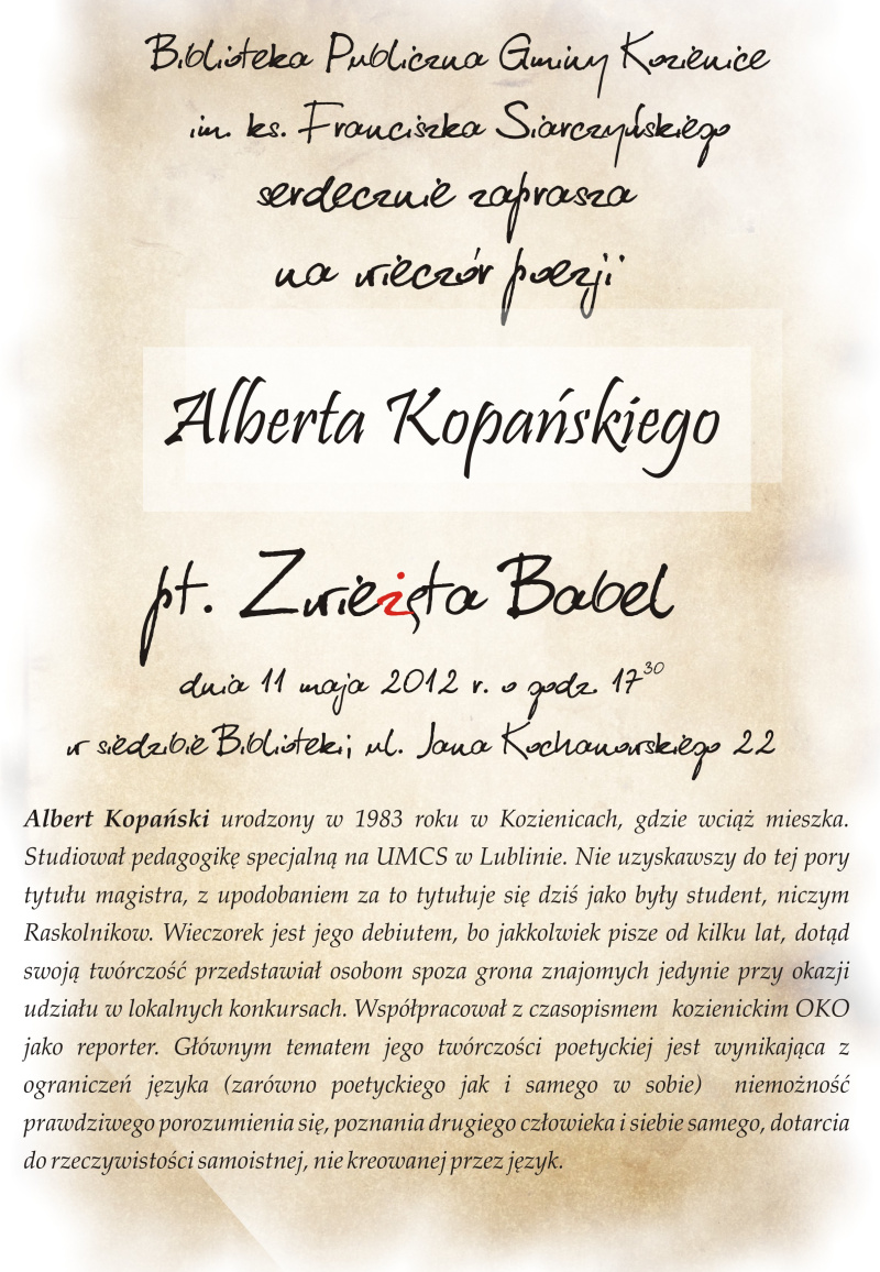 11 maja 2012 r. - spotkanie z poezją Alberta Kopańskiego