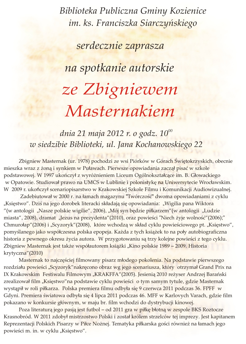 21 maja 2012 r. - spotkanie autorskie ze Zbigniewem Masternakiem