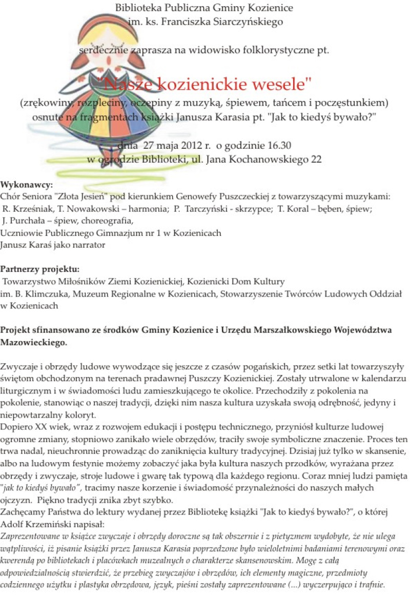 27 maja 2012 r. - „Nasze kozienickie wesele” - widowisko folklorystyczne