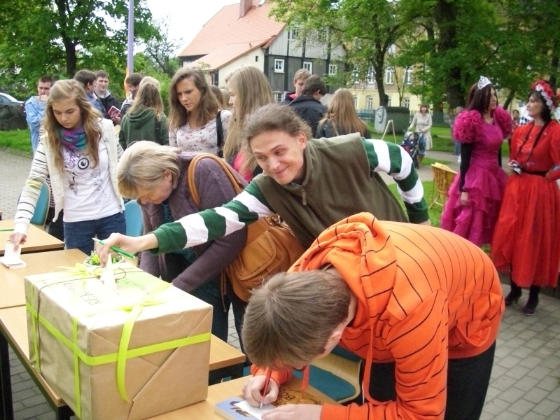 W tym dniu mieliśmy do wykonania trzy zadania. Pierwsze to bicie rekordu ilości czytelników, którzy w jednym dniu, o jednej godzinie przyszli na spotkanie z książką. Po otwarciu urny z napisem REKORD okazało się, że 8 maja 2012 roku o godzinie 12:00 do biblioteki przyszło 87 osób. Jest to pierwszy w naszej 65-letniej historii rekord, który na pewno uda nam się poprawić w przyszłości.
