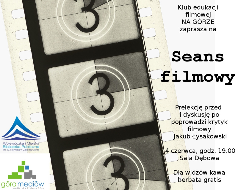 Klub Edukacji Filmowej zaprasza na seans filmowy 4 czerwca 2012, o 19:00 do Sali Dębowej Biblioteki Norwida w Zielonej Górze. Prelekcję przed seansem i dyskusję po poprowadzi, jak zwykle, krytyk filmowy Jakub Łysakowski. Dla wszystkich widzów kawa, herbata gratis.