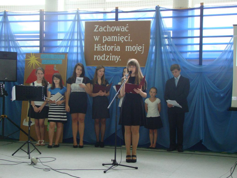 Konkurs skierowany był do uczniów Szkoły Podstawowej i Gimnazjum , a uczestnicy mogli składać prace w dwóch kategoriach. Historia mojej rodziny - napisana w formie opowiadania, eseju, wspomnień, wzbogacona o pamiątkowe zdjęcia oraz album - historia mojej rodziny, gdzie należało umieścić stare zdjęcia, dokumenty oraz pamiątki rodzinne, wraz z ich opisami. Spośród 9 starannie przygotowanych, niezwykle ciekawych prac, jury wyłoniło 3 najlepsze, ale wszyscy uczestnicy otrzymali dyplomy i nagrody rzeczowe.