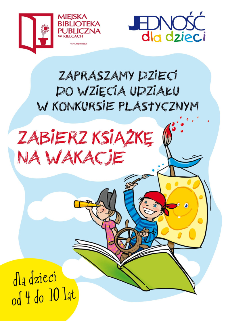 A co potem? Potem można bawić się dalej biorąc udział w konkursie plastycznym pt. „Zabierz książkę na wakacje”, do którego zapraszają Miejska Biblioteka Publiczna w Kielcach i Wydawnictwo „Jedność”.