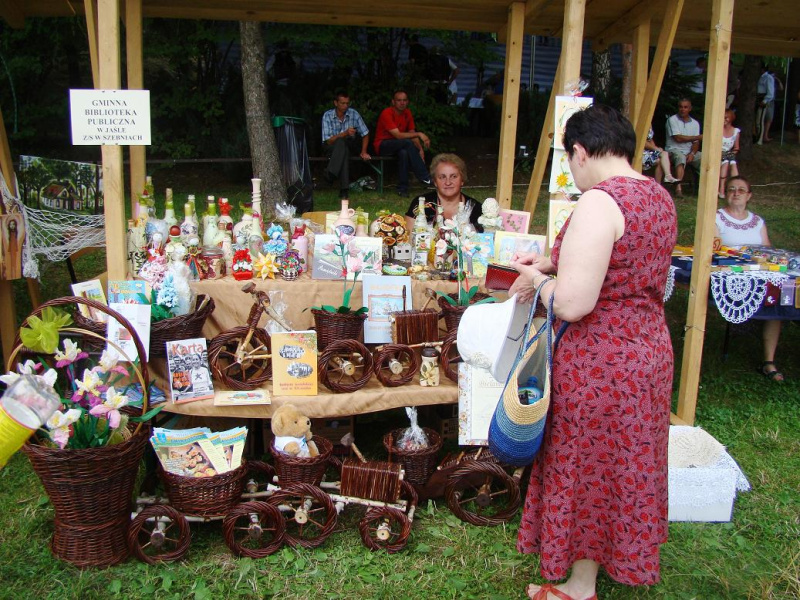 Na wspólnym stoisku z biblioteką wystawiono wydawnictwa: Z. Macek, M. Bielamowicz, B. Tora, R. Kolanko, M. Tomasik oraz twórczość W. Breowicza. Nie zabrakło wiklinowych ozdób ogrodowych wykonanych przez młodego twórcę z Zimnej Wody. Zwiedzający wystawy twórców byli pełni uznania do artystycznego kunsztu prac wykonanych przez czytelników i bibliotekarzy. Usłyszeliśmy wiele ciepłych słów o naszej pracy skierowanej na ocalenie od zapomnienia lokalnego dorobku twórczości ludowej naszej małej Ojczyzny.