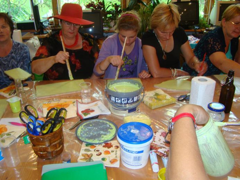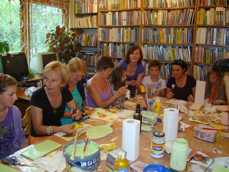 Pracownicy i wolontariuszki z szebieńskiej biblioteki przeprowadzili warsztaty z decoupage dla bibliotekarzy krynickiej biblioteki, przedstawicielek lokalnych organizacji oraz czytelników biblioteki.