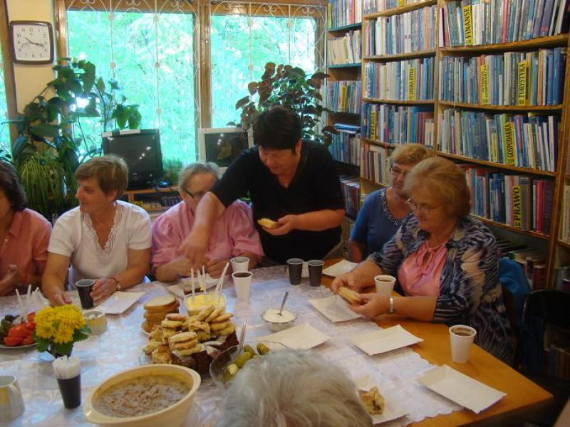 Na stołach zagościły nasze lokalne produkty: wiejski kołacz i rogale z Szebni, pachnący chleb z masłem i serem z Niepli, jabłecznik z Bierówki, smalec ze śliwkami i kiszonym ogórkiem z Trzcinicy, proziaki z Osobnicy i wiele pysznych wiejskich potraw przygotowanych przez przedstawicielki KGW z powiatu jasielskiego. W Czarnym Potoku w filii bibliotecznej odbyło się spotkanie autorskie z Marią Tomasik poetką ludową z Sądkowej, gmina Tarnowiec. W czytelni na autorkę czekała cała sala dzieci, młodzieży i rodziców.