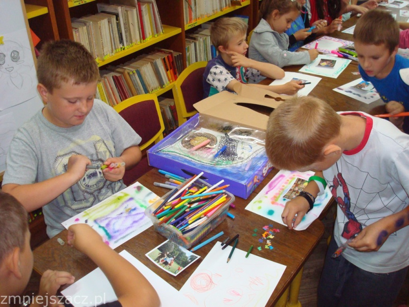 Przygoda ze scrapowaniem w żagańskiej Książnicy zaczęła się przed południem, 27 lipca i tak się wszystkim spodobała, że powtórka nastąpiła 2 sierpnia 2012 r. Wszyscy uczestnicy otrzymali zdjęcia z zajęć wakacyjnych przygotowanych przez MBP w Żaganiu, scrapki i dmuchane flamastry. Dzieci stanęły na wysokości zadania i powstały prawdziwe arcydzieła, zaskakujące kolorystyką i fantazją.