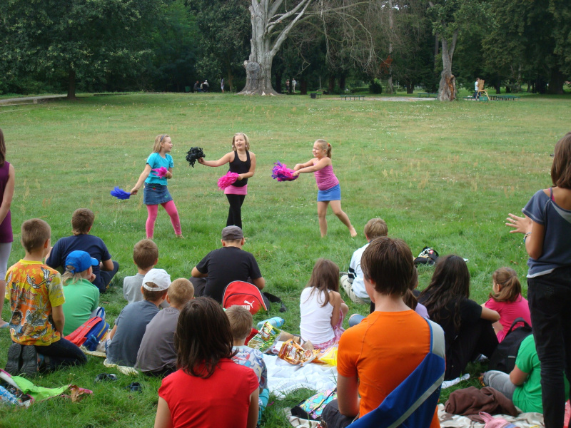 Niestety wszystko co dobre, szybko się kończy i nastał czas pożegnania. Piątek, 10 sierpnia 2012 r. był w Miejskiej Bibliotece Publicznej w Żaganiu ostatnim dniem wakacyjnych spotkań z Januszem Korczakiem. Zajęcia odbywające się pod hasłem "Kiedy śmieje się dziecko, śmieje się cały świat" zakończyły się FESTIWALEM TALENTÓW. Od rana świeciło piękne słońce sprzyjające piknikowi w parku. Na dzieci czekały łakocie oraz dobra zabawa. Uczestnicy aktywnie brali udział we wszystkich zaplanowanych zabawach. Była gra w zbijanego, zabawa „Tłukę, tłukę pieprz”, zawody ze skakanką i piłką, wiecznie żywa zabawa w rolnika. Oczywiście nie mogło zabraknąć FESTIWALU TALENTÓW na którym wystąpił iluzjonista, chirliderki oraz inni ciekawi wykonawcy. Trzeba przyznać, że nasza młodzież posiada dużą wyobraźnię, jest bardzo uzdolniona, i odważna.