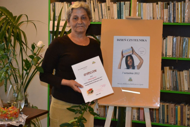 Dzień Czytelnika, to pierwsza taka inicjatywa zorganizowana przez Miejską Bibliotekę Publiczną w Lipnie. Na czytelników, którzy w tym dniu odwiedzili bibliotekę czekały sympatyczne niespodzianki. Najaktywniejsi zostali uhonorowani dyplomami. Ponadto wszyscy, którzy zapisali się do biblioteki 5 września, otrzymali od bibliotekarzy książki w prezencie. Były to wydawnictwa regionalne, poetów skupionych wokół Lipnowskiej Grupy Literackiej, działającej przy bibliotece. Najmłodsi użytkownicy otrzymali zakładki do książek i słodycze. W bezpośredniej rozmowie z nagrodzoną czytelniczką dowiedziałyśmy się, „że jest to jej pierwszy, i jak do tej pory jedyny dyplom”. Wdrażanie nowych pomysłów, wychodzenie z ofertą czytelniczą do różnych grup społecznych jest gwarancją zadowolenia użytkowników z wysokiej, jakości świadczonych usług przez bibliotekarzy. Wierzymy, że czytelnik w lipnowskiej bibliotece czuje, że jest najważniejszy, a jego potrzeby są w centrum zainteresowania bibliotekarzy. Warto przekazać tę inicjatywę innym biblioteką.