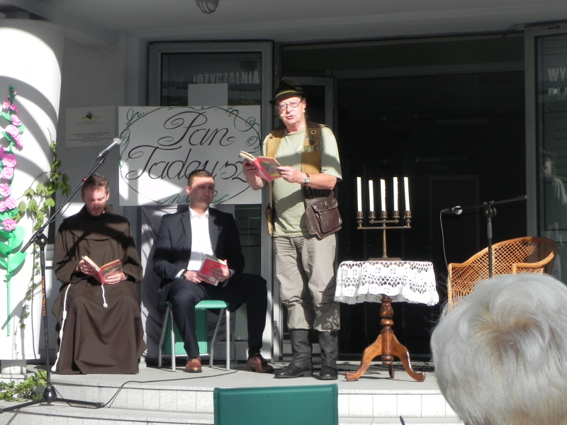Zielony skwer przed Biblioteką zamienił się w las i soplicowski ogród. Oprawę muzyczną przedsięwzięcia zapewniły koncerty skrzypcowe w wykonaniu wielunian Eryki Rzepki i Jakuba Skoczylasa. Przedsięwzięcie uatrakcyjniły scenki z poematu w wykonaniu aktorów Koła Teatralnego działającego przy MiGBP w Wieluniu.