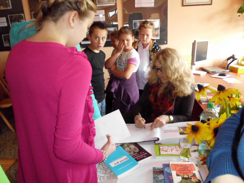 1,5 godzinne spotkanie przebiegło naprawdę szybko i żal było się żegnać. Pani Anna Onichimowska zaprosiła zgromadzonych na Targi Książki w Krakowie, na których będzie promować swoje nowe książki.
