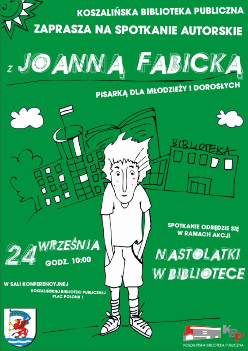 Mieszkańców Koszalina zaprosiliśmy na spotkanie z Fabicką do Budynku Głównego KBP 24 września na godz. 10.00 i 25 września do Filii bibliotecznej nr 3 przy ul. Młyńskiej. Poza Koszalinem Autorka odwiedziła wszystkie biblioteki gminne w powiecie koszalińskim (Będzino, Biesiekierz, Bobolice, Manowo, Mielno, Polanów, Sianów, Świeszyno).