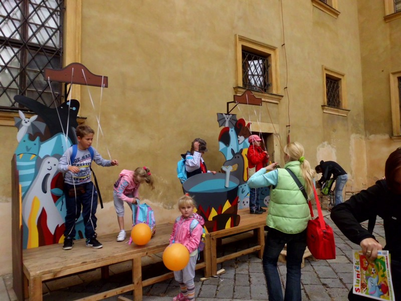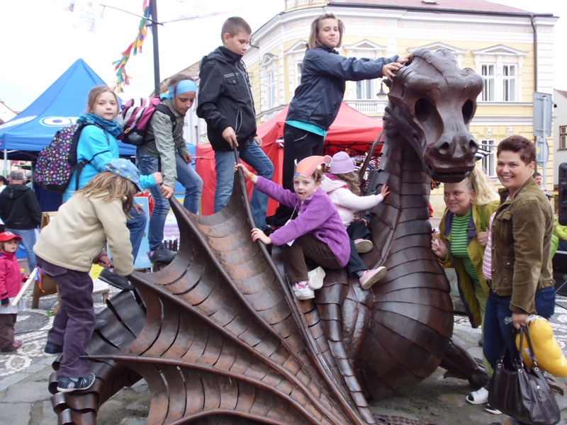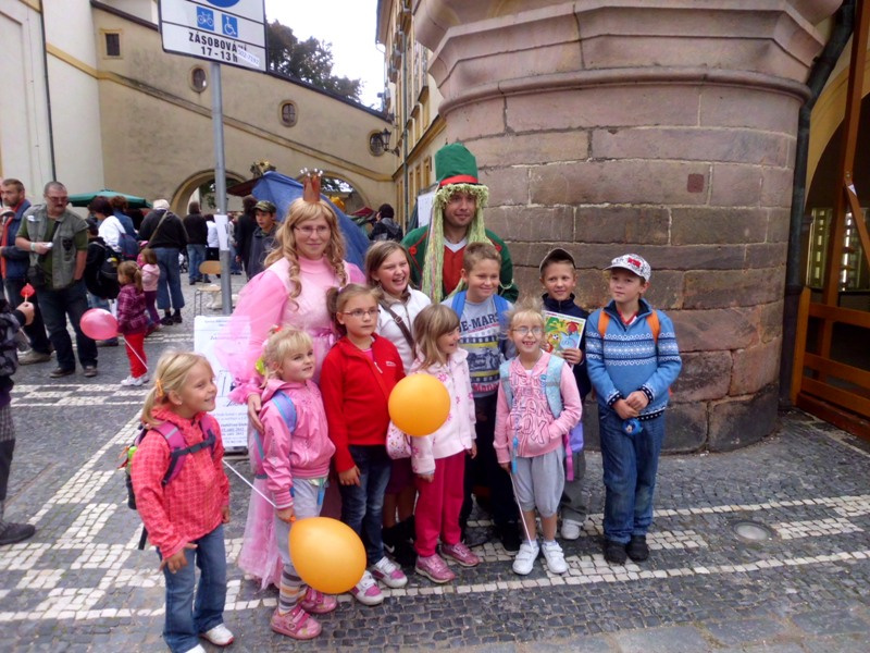 Tuż po przekroczeniu płatnej bramy wieży polskie dzieci przywitał osobiście Rumcajs, z którym każdy chciał mieć osobistą fotkę. W wieży mieści się izba pamięci Radka Pilařa – ilustratora opowiadań o Rumcajsie i jego rodzinie. Pomimo chłodnej soboty mnóstwo ludzi, większość stanowią rodzice z dziećmi. Na każdym kroku coś się dzieje, w dużym i małym rynku – trzy sceny, w bocznych uliczkach, aż kipi od aktywności, pod arkadami gra kataryniarz, w podwórzach i obiektach wiele niespodzianek. WSZYSTKO dla małych i większych dzieci. Z nadmiaru wrażeń grupa polska dzieli się na cztery grupy i spotykają się dopiero na pysznym obiadku.