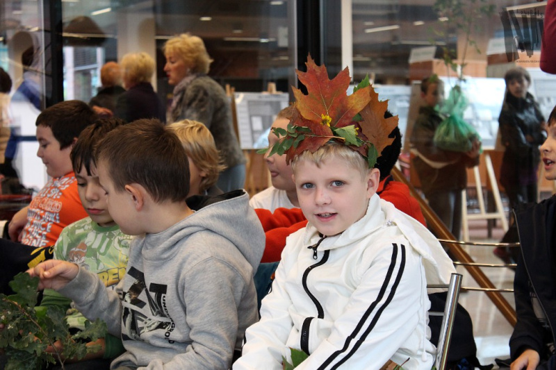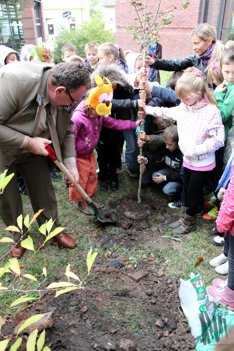 i nauczycieli klas trzecich Szkoły Podstawowej nr 1, którzy w przebraniach Leśnych Ludków tłumnie przybyli 10 października do Biblioteki Głównej. Gościem specjalnym bibliotecznego Święta Drzewa był Pan Marek Bator - leśniczy, który od przeszło trzydziestu lat dba o rozwój i ochronę flory oraz fauny Jaworzna. Spotkanie rozpoczęło się od głośnego czytania książki o życiu leśnych zwierząt i zagrożeniach jakie niesie ze sobą rozwój cywilizacji i coraz większa ingerencja człowieka w środowisko naturalne. Zaprezentowana historia wywołała lawinę pytań ze strony uczniów, na które z wielką chęcią i dużą dozą cierpliwości odpowiadał Pan Leśniczy. Z myślą o najmłodszych przygotowaliśmy również konkurs, polegający na rozpoznawaniu odgłosów leśnych zwierząt. Nagrody książkowe, dla zwycięskich drużyn, wręczyła Dyrektor jaworznickiej Książnicy Pani Monika Rejdych. Był również czas na zabawy, wspólne tańce i śpiew. Przy akompaniamencie muzyki, roztańczony, barwny korowód leśnych dzieci przemaszerował przed gmach Biblioteki Głównej, gdzie pod bacznym okiem Pana Leśniczego, uczniowie posadzili pierwsze drzewko w „Literackim zagajniku” MBP Jaworzno. Drzewo otrzymało imię Janusza Korczaka - wybitnego pedagoga, pisarza i publicysty, który całe swoje życie poświęcił najmłodszym.