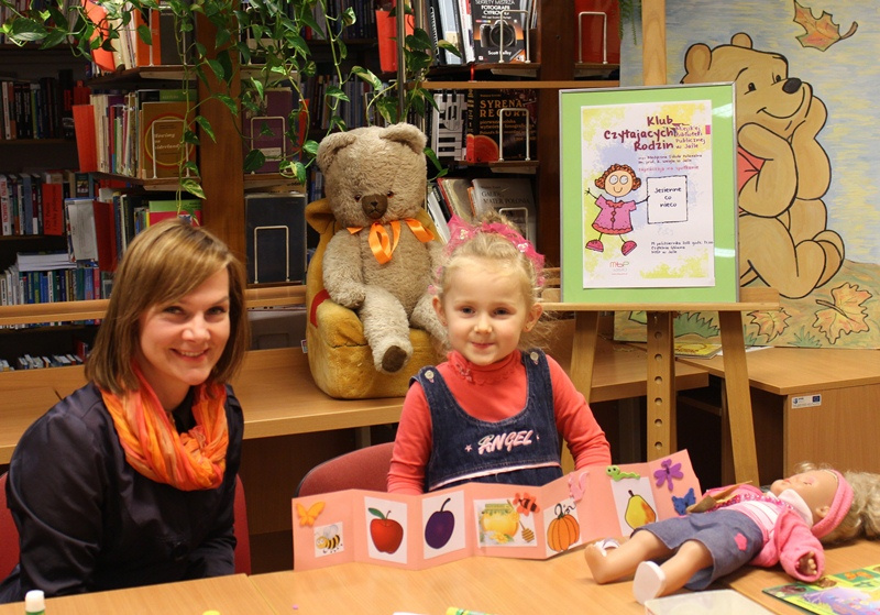 Z okazji 86 rocznicy wydania książki „Kubuś Puchatek” A.A. Milne’a, w kalendarzu akcji „Cała Polska czyta dzieciom” obchodzone są Ogólnopolskie Urodziny Książkowego Misia. Mali członkowie Klubu Czytających Rodzin włączyli się zatem w ulubione zabawy sympatycznego Jubilata. Pomogli pszczołom trafić do ula, zebrali do koszyczków jesienne owoce: jabłka, gruszki, maliny, śliwki, zanieśli też do Kubusiowej spiżarni dynie i uzupełnili zapasy miodu. W efekcie współpracy z rodzicami i gośćmi powstały kolorowe jesienne książeczki. Nie mogło się także obyć bez tańców, których bohaterami były misie. Wraz z słuchaczkami z Medycznej Szkoły Policealnej dzieci bawiły się w rytm piosenek: „Ja jestem niedźwiadek”, „Jadą, jadą misie”, „Stary niedźwiedź mocno śpi”. Spotkanie było też okazją do zapoznania się z najnowszymi książkami o Kubusiu i jego przyjaciołach, dostępnymi w Oddziale dla Dzieci MBP w Jaśle.