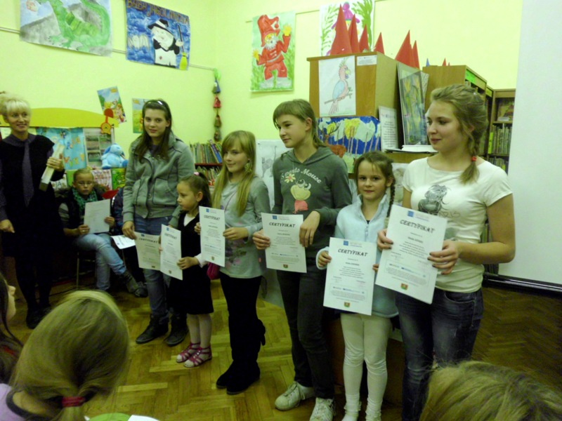 11 października w bibliotece centralnej w Ołdrzychowicach Kłodzkich odbyło się uroczyste zakończenie projektu Bajeczne Animacje Kulturalne wraz z wręczeniem certyfikatów dla 70 uczestników kursów językowych. Wszyscy zaliczyli Polsko-Czeskie Dyktando śpiewająco i recytatorsko. Egzaminowała pani Agnieszka Janiszewska ze Szkoły Językowej PROGRESS z Kłodzka. Na egzamin licznie przybyli rodzice i bibliotekarze. Po wszystkim spożyto pyszny poczęstunek przygotowany przez restaurację BOGUSZYN w Boguszynie.