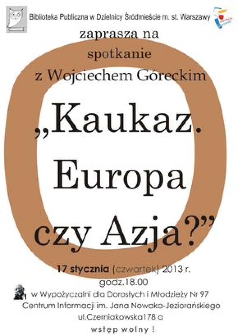 zaprasza na spotkanie z Wojciechem Góreckim - analitykiem Ośrodka Studiów Wschodnich, publicystą, autorem książek reporterskich (m.in. "Planeta Kaukaz" i "Toast za przodków"). W latach 2002-2007 pierwszy sekretarz, a następnie radca w Ambasadzie RP w Baku. Ekspert misji UE, badającej przyczyny wojny rosyjsko-gruzińskiej w 2008 r.