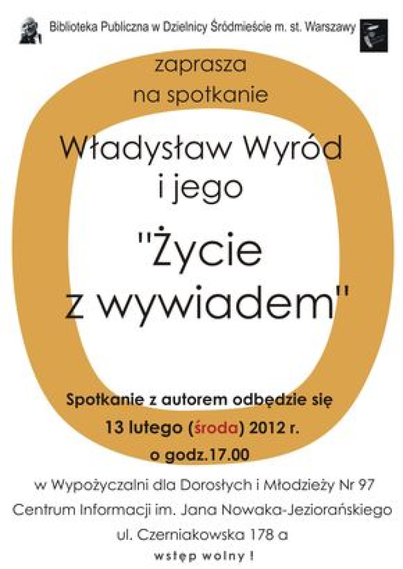 zaprasza na spotkanie pt. „Życie z wywiadem”. Gość spotkania, Władysław Wyród, autor prezentowanej książki będzie opowiadał o swoim życiu, pracy agenta pod przykryciem i zdobywaniu konkretnych informacji z zakresu najnowszych postępów w nauce i technice.