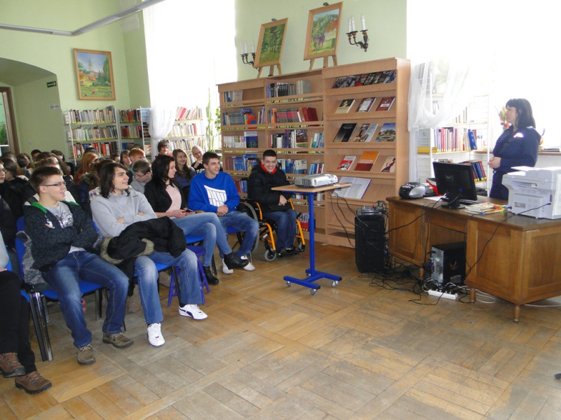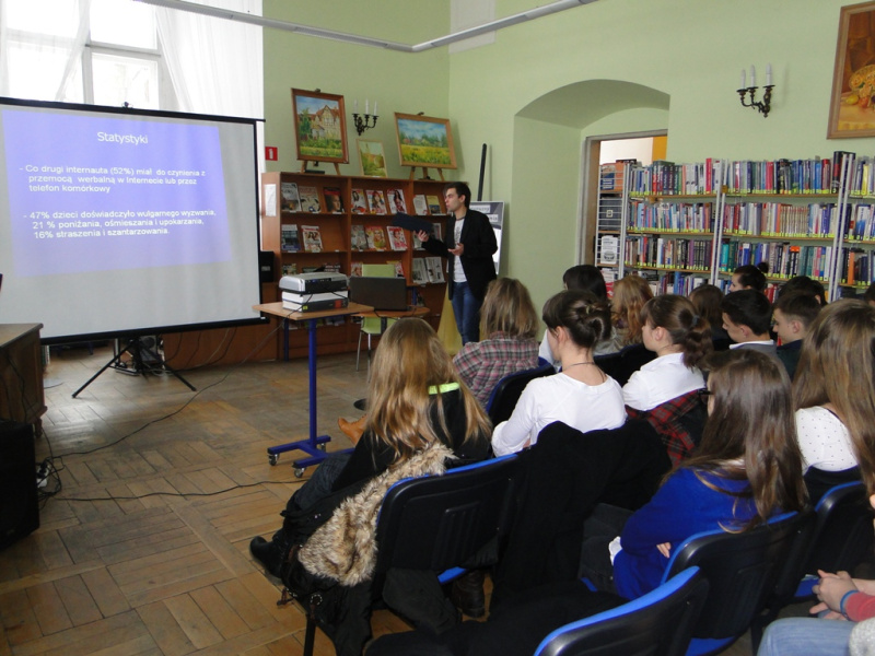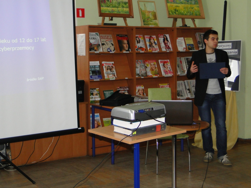 Miejska Biblioteka Publiczna w ramach obchodów Dnia Bezpiecznego Internetu, który w tym roku obchodzony jest 5 lutego pod hasłem „Serfuję- respektuję”, dla uczniów żagańskich szkół zorganizowała dwa spotkania. Z młodzieżą Liceum Ogólnokształcącego im. Banacha 5 lutego spotkała się Joanna Wojciechowska z Wydziału Prewencji Komendy Powiatowej Policji w Żaganiu, natomiast dzisiaj, z uczniami Publicznego Gimnazjum nr 1 w Żaganiu – dziennikarz Lokalnej Gazety Powiatu Żagańskiego Bartosz Kulej. Tematem była oczywiście edukacja w zakresie przestrzegania zasad bezpieczeństwa w Internecie oraz respektowania praw innych użytkowników Sieci. Biblioteka ogłosiła również konkurs na rozwiązanie krzyżówki, który zakończy się 31.03.2013 r.