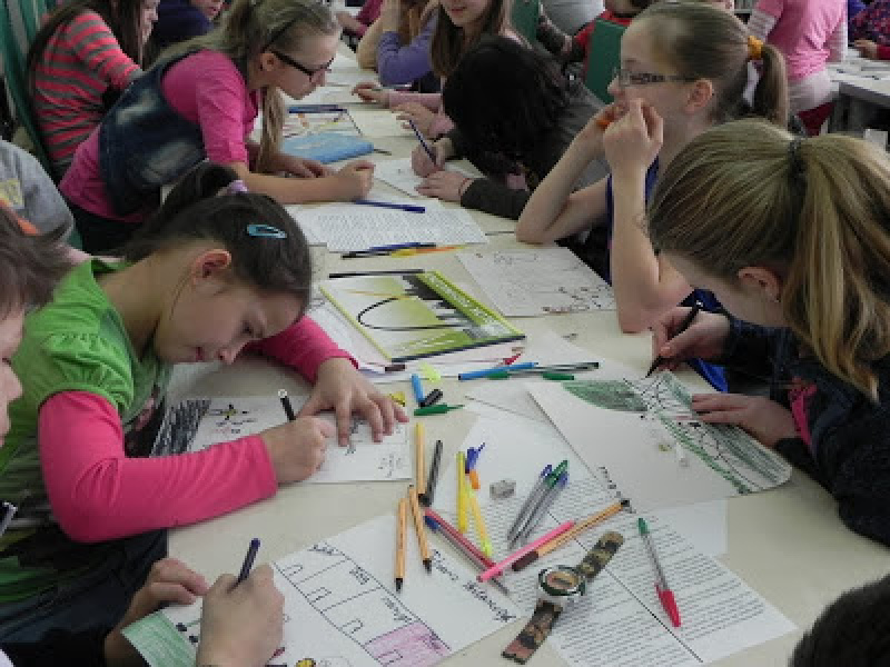 Uczestnicy zajęć dowolną techniką plastyczną stworzyli własny komiks do przeczytanego fragmentu książki. Pomysły były oryginalne...