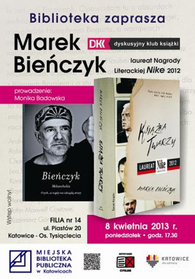 Miejska Biblioteka Publiczna w Katowicach zaprasza na spotkanie autorskie z Markiem Bieńczykiem.