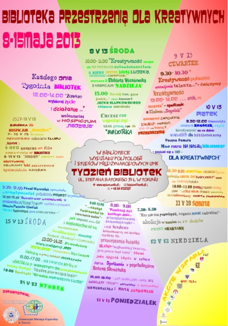 Zapraszamy Kreatywne i Kreatywnych oraz Tych, Którzy jeszcze nie odkryli swojej kreatywności do Biblioteki Wydziału Politologii i Studiów Międzynarodowych UMK w Toruniu.