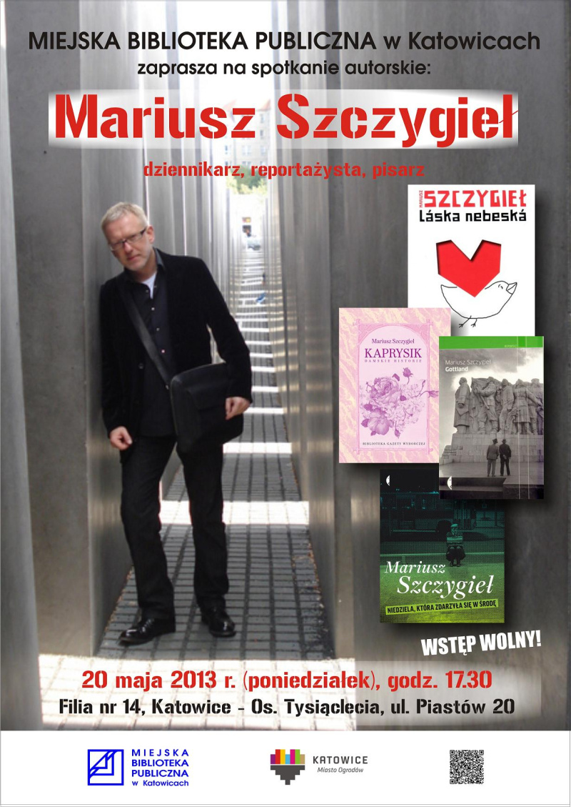 Miejska Biblioteka Publiczna w Katowicach zaprasza na spotkanie autorskie z Mariuszem Szczygłem, które odbędzie się 20 maja w Filii nr 14 przy ul. Piastów 20.