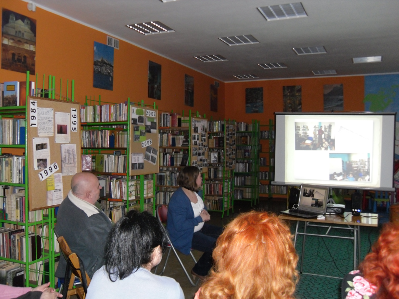 Zauroczeni fado, zasłuchani w przepięknych fragmentach muzycznych kraszących spotkanie, z poczuciem niesłychanej wrażliwości, piękna i wyjątkowych doznań artystycznych weszliśmy w drugą część imprezy, która w prezentacji multimedialnej ukazywała działania Filii nr 5, na przestrzeni 40 lat istnienia. Była to doskonała okazja do wspomnień z Czytelnikami, Sympatykami naszej placówki, którzy współtworzyli wraz z pracownikami atmosferę, dorobek Biblioteki przy Wilczej. Jak to bywa na urodzinach były życzenia, chwile wzruszenia i tort, który smakował, tym bardziej, że okraszony był radością i nadzieją na dalsze lata owocnej pracy.