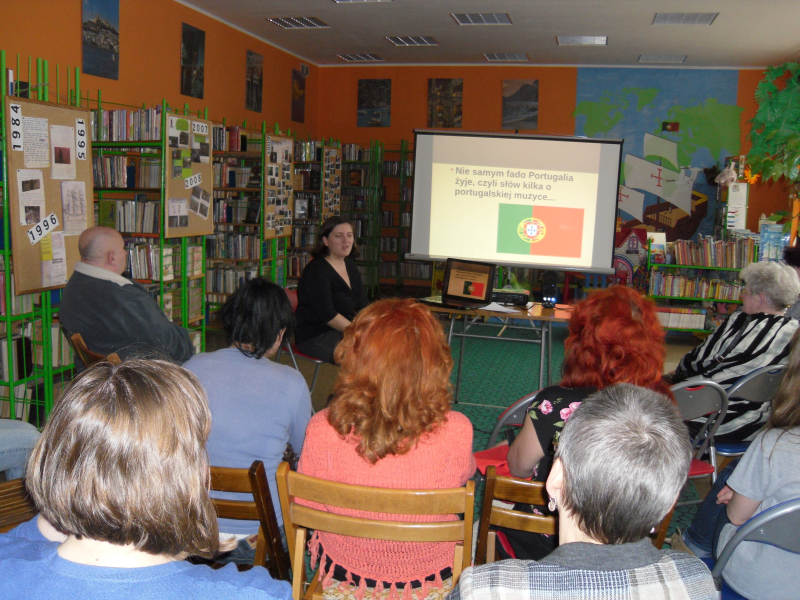 Zazwyczaj, gdy myślimy o portugalskiej muzyce to pierwsza myśl, która przychodzi nam do głowy to FADO. Tymczasem nasze spotkanie 19 kwietnia 2013 r., miało pokazać, iż „Nie samym fado Portugalia żyje, czyli kilka słów o portugalskiej muzyce”. I tak się też stało, ponieważ nasz Gość Pani Monika Nowak-Vilela, przedstawiła nam obraz portugalskiej muzyki, w szerszym wymiarze. Nie sposób mówić o fado i nie powiedzieć o jej korzeniach. Portugalczycy zapytani o korzenie fado twierdzą, iż jej powstanie związane jest z uczuciem smutku (saudade), które towarzyszy, im, gdy muszą opuścić ukochany dom czy kraj. Owo saudade brzmi w różnych miejscach Portugalii nieco, inaczej. Istnieją, bowiem dwa odmienne typy tej muzyki w zależności od miejsca jej wykonywania: fado cantado, charakterystyczne dla Lizbony i Porto oraz fado z Coimbry. Mówiąc, o fado nie można nie wspomnieć o najsławniejszej piosenkarce Amalii Rodrigues. Obecnie znanymi wykonawcami są min. Misia, Cristina Branco czy Mariza. Należy do nich także kanadyjka portugalskiego pochodzenia – Nelly Furtado – dzięki, której mocno rozpowszechniły się rytmy z półwyspu Iberyjskiego. Wielu współczesnych piosenkarzy portugalskich młodego pokolenia łączy muzykę popową z folkiem, wplatając klasyczne dźwięki fado, jak, choćby Dulce Pontes, czy zespół Madredeus.
