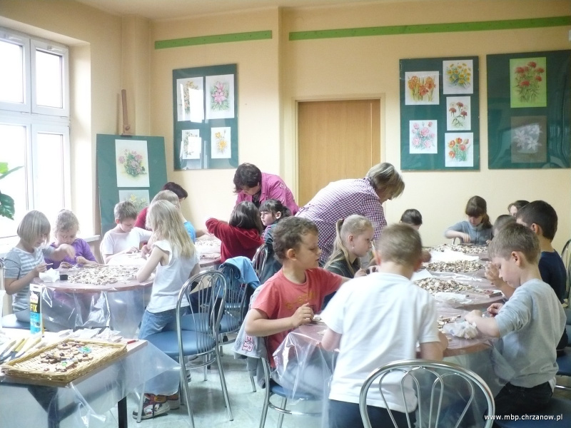 A w filiach! Też z pomysłem i kreatywnie … Płaza: Zabawy z językiem angielskim dla dzieci z Przedszkola Samorządowego w Płazie, warsztaty językowe dla dorosłych English for everyone porozmawiajmy po angielsku (08.05). Kolejny dzień (09.05) to kolejne w bibliotece spotkanie z Renatą Piątkowską autorką książek dla dzieci. Pisarce towarzyszyła lektorka - Pani Elżbieta Malwina Kożurno, która czytała fragmenty książek. Było też plastycznie (13.05) w ramach warsztatów plastycznych dzieci tworzyły fantazyjne Kwiatowe Puzzle, specjalnie dla swoich mam, bo ich święto tuż, tuż… I na koniec (14.05) Wszechnica Chrzanowska Lokalnie - w ramach projektu Kampania Ziemia Chrzanowska – ekologiczna kraina królestwem pszczół - wykład Pszczoły w ochronie przyrody poprowadzony przez Jerzego Oczkowskiego – prezesa Koła Pszczelarskiego w Chrzanowie. W Tydzień Bibliotek w Płazie włączyli się również gimnazjaliści przygotowując (15.05) - spektakl słowno-muzyczny Podaję kwiaty, z okazji Roku Juliana Tuwima.