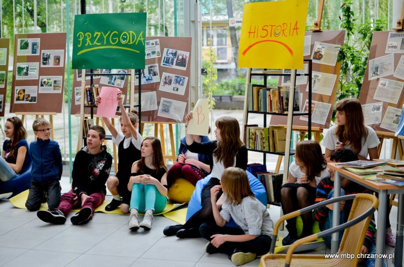 PG nr 1, PG NR 2, SP nr 3, SP nr 5, SP nr 6, bawiliśmy się w holu biblioteki artystycznie i wiedzowo. Były przedstawienia, piosenki, tańce, kabarety… a potem WIELKA BITWA sektorów książek: PRZYGODA (SP nr 6) , FANTASTYKA (PG nr 1), LEKTURY (SP nr 5), SENSACJA (SP nr 3), HISTORIA (PG nr 2). Zwyciężyła HISTORIA i PG nr 2 w Chrzanowie! Byli świetni!