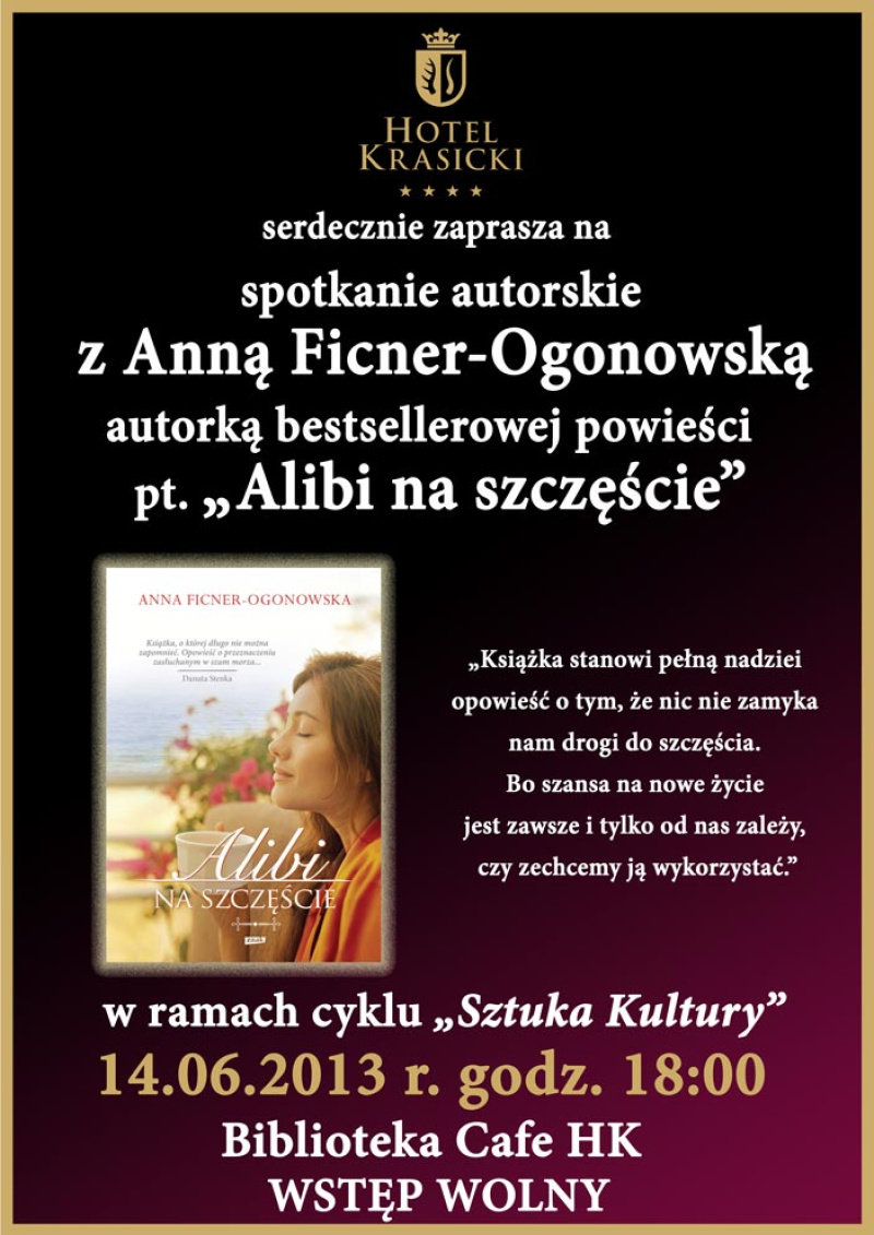 14 czerwca 2013 r. (piątek) o godz. 18:00 w Bibliotece CAFE odbędzie się spotkanie autorskie z Anną Ficner-Ogonowską,
