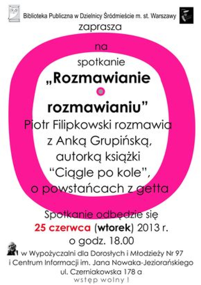 na spotkanie z Anką Grupińską autorką książki “Ciągle po kole”, o powstańcach z getta.