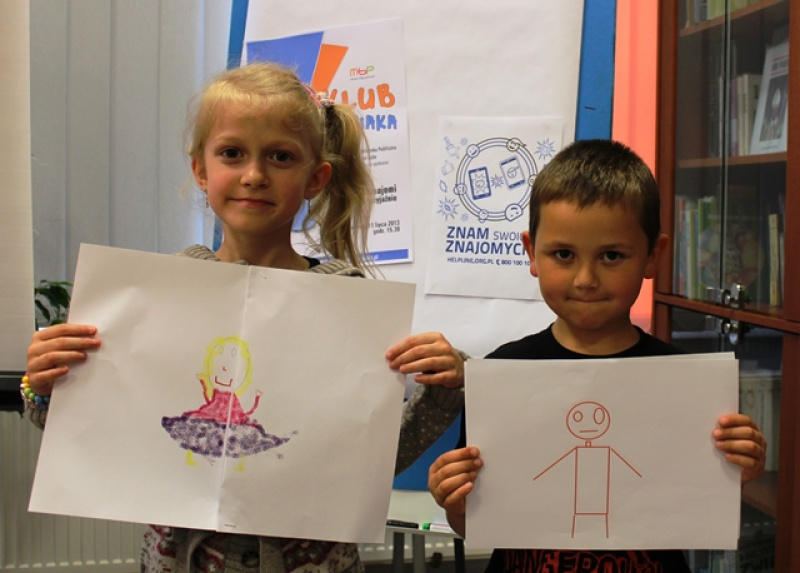 O tym jak bezpiecznie poznawać znajomych w Internecie dowiedzieli się uczestnicy czwartkowego spotkania Klubu Sieciaka. Klubowicze poznali historię internetowej znajomości swojego rówieśnika – Kuby, bohatera filmu Znajomi-Nieznajomi a rad dotyczących bezpiecznego korzystania z Internetu udzielił Krzysztof Hołowczyc – ambasador kampanii 3...2…1…Internet! W integracyjnej zabawie stworzyliśmy żywą „internetową Sieć” a w programach graficznych powstały abstrakcyjne – pełne kolorów i zadziwiających kształtów – portrety najlepszych przyjaciół.