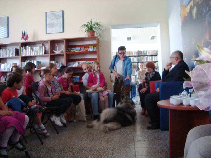 w Bibliosferze – w filli Książnicy Beskidzkiej. Ostatnie zajęcia tegorocznych wakacji także obfitowały w atrakcje dla dzieci. Spotkanie swoją obecnością, uświetniła wdowa po Lechosławie Marszłku - twórcy Reksia, Pani Halina Filek-Marszałek. Dzieci z uwagą i z ogromną radością słuchały wystąpienia pracownika Miejskiego Schroniscka dla Bezdomnych Zwierząt w Bielsku-Białej, który opowiadał o adopcji czworonoga oraz podziwiały wystawę prac konkursowych. Nieskrywaną przyjemność sprawił dzieciom gość specjalny – pies Filip.