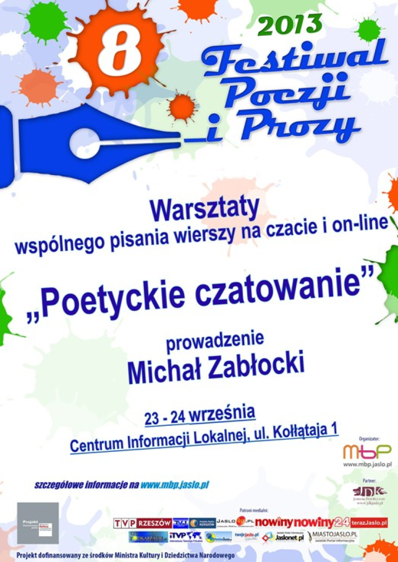 W ramach VIII Festiwalu Poezji i Prozy dniach 23-24 września 2013 r. w Miejskiej Bibliotece Publicznej w Jaśle zaprezentowany zostanie blok Multimedialna Poezja, który ma na celu przedstawienie nowych form twórczości literackiej i zachęcenie młodzieży do aktywnego uczestnictwa w kulturze.