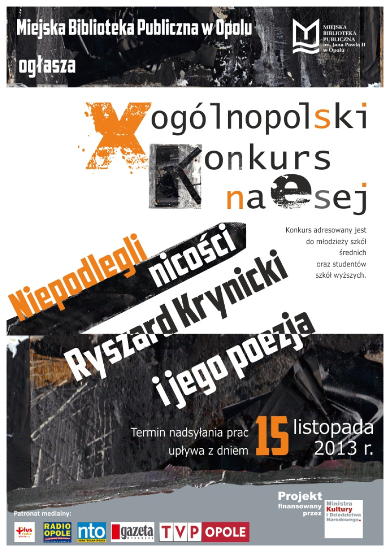 X OGÓLNOPOLSKI KONKURS NA ESEJ „Niepodlegli nicośći”. Ryszard Krynicki i jego poezja