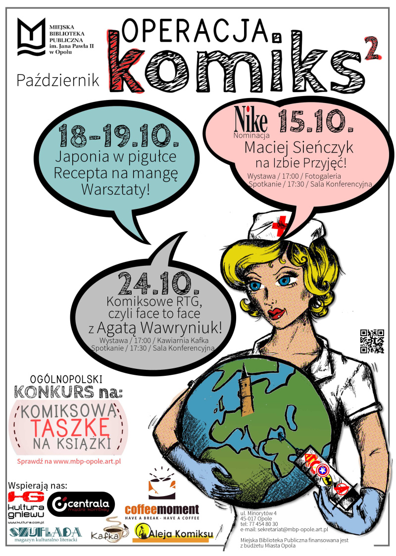Miejska Biblioteka Publiczna w Opolu znów postara się przekształcić stolicę polskiej piosenki w stolicę komiksu. Od października do grudnia 2013 r. sala konferencyjna MBP w Opolu, przy ul. Minorytów 4 zamieni się w prawdziwy komiksowy blok operacyjny.