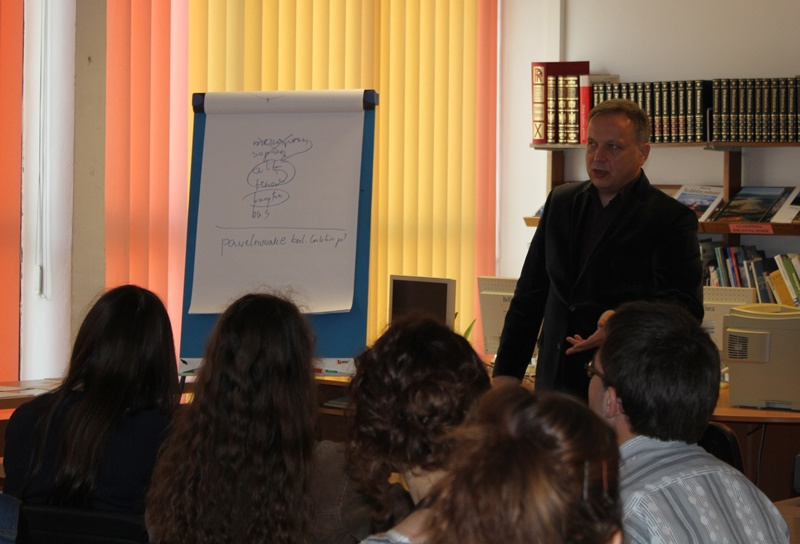 Zasady wystąpień publicznych, style retoryczne i znaczenie mowy ciała poznali uczestnicy warsztatów „Retoryka i sztuka wystąpień publicznych” prowadzonych przez dr hab. Pawła Nowaka, które odbyły się 8 – 9 października 2013 r. w Miejskiej Bibliotece Publicznej w Jaśle w ramach projektu „POLSKI! PO-WIEDZ TO!”.