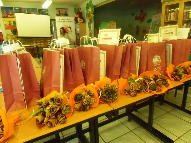 W spotkaniu uczestniczyły osoby, które reprezentują naszych partnerów w działaniach, była przedstawicielka Związku Emerytów Rencistów i Inwalidów pani Zofia Bachrynowska, która przedstawiła wspólne działania seniorów z biblioteką. Plastyk pani Danuta Okularczyk przeprowadziła warsztaty z wykorzystaniem jesiennych liści, powstały piękne kolorowe bukiety „jesiennych róż”, które cieszyły uczestników oryginalnym wykonaniem.